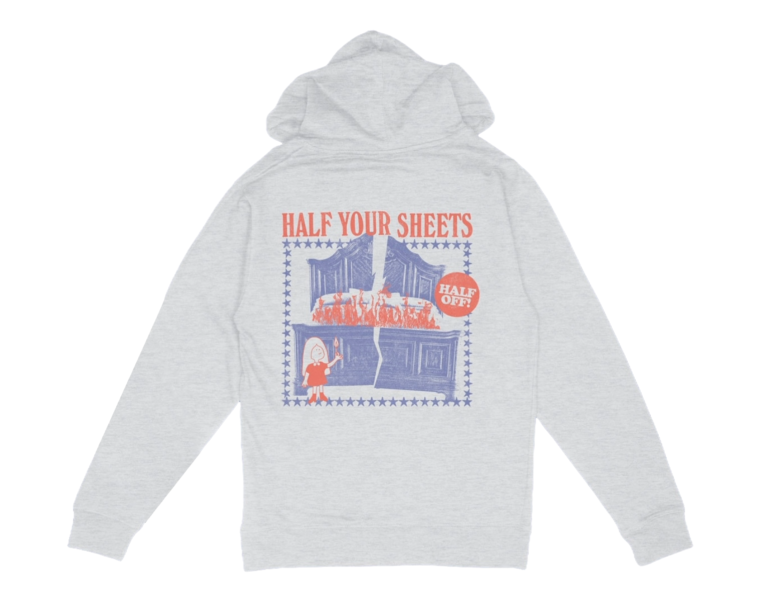 cozy hoodie featuring artwork inspired by my latest original song “Half your Sheets”
